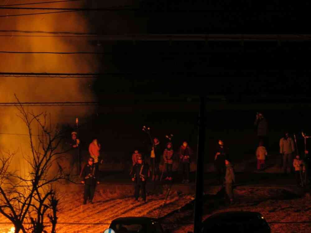 竹の先に上新粉で作ったお団子を付け、どんど焼きの火で焼くの。