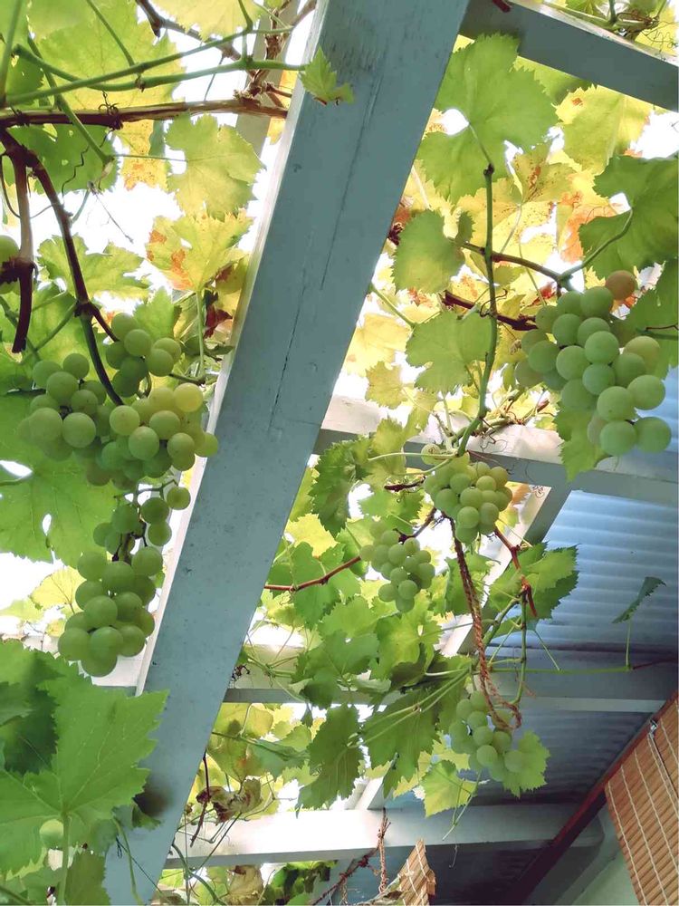 今年のわが家の巨峰は比較的順調に育って来ましたがなかなか上手く色づいてくれません。でも既に美味しくなっています。