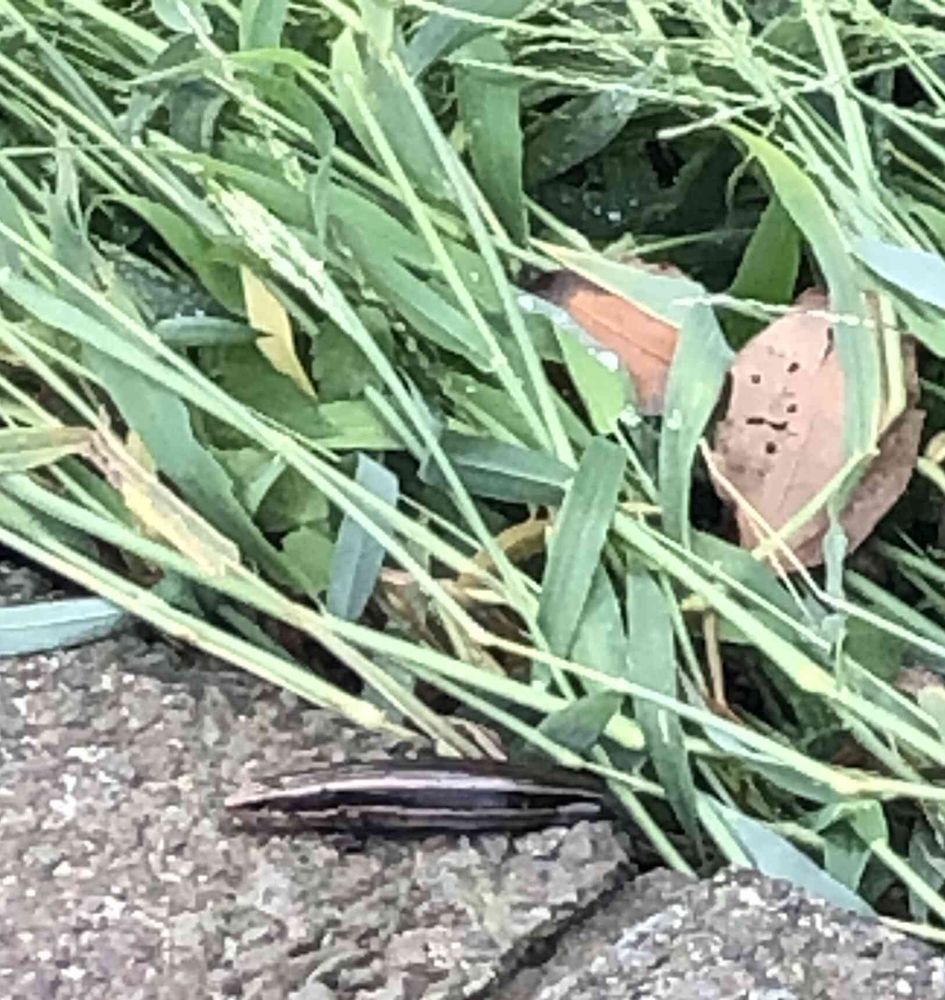 倒れた雑草の根元から、ひょっこりとカナヘビが顔を出してました(^^)