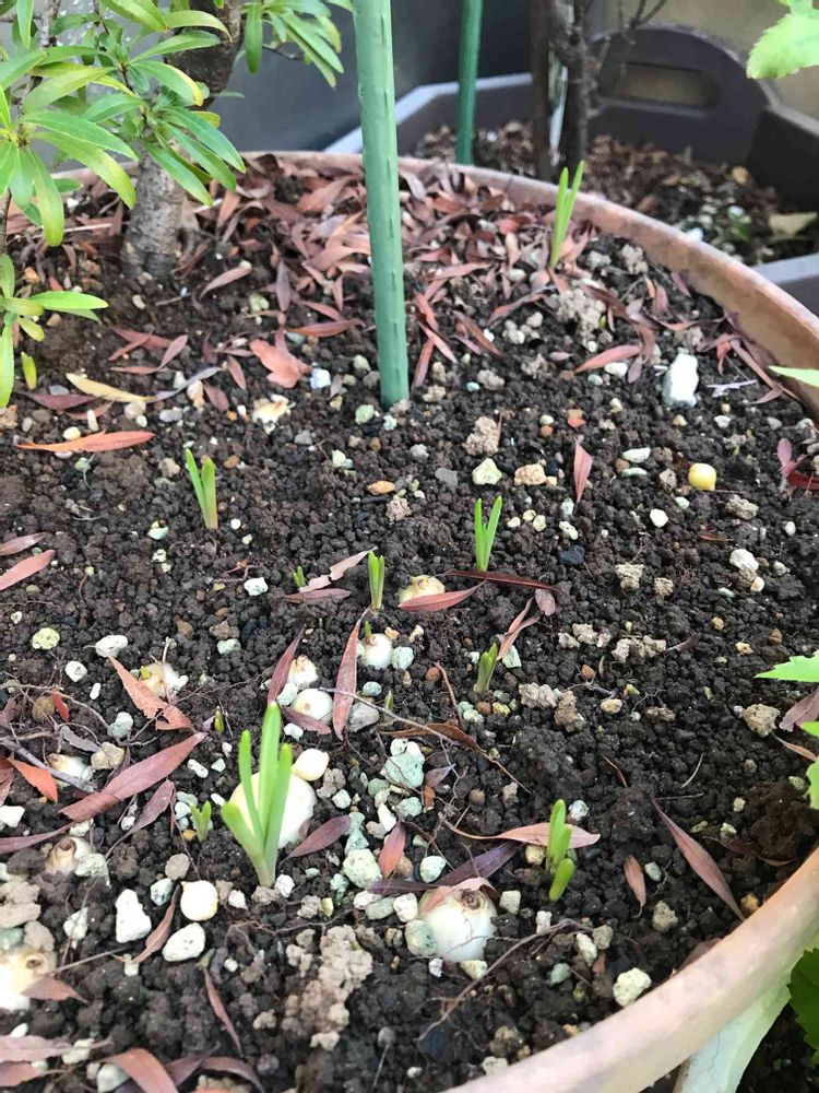 植えっぱなしのムスカリさん芽がまた今年もしっかり出て来ました