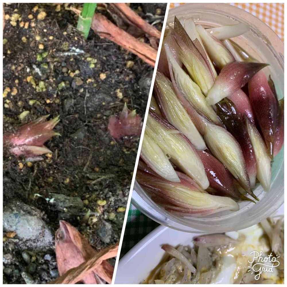 ジヤァリの駐車場の片隅になってる茗荷‼️