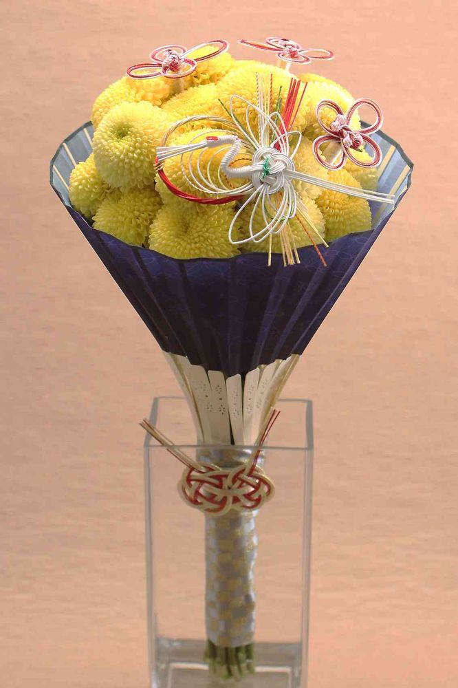 9月5日福島県福島市の【コラッセふくしま】にて次世代国産花き産業確立推進事業 ≪第14回ふくしまチャンピオンズカップ≫が開催され「2020東京オリンピック・ビクトリーブーケ」をイメージした花束を花屋さんが会場に持ち込んでコンテストをする持込フラワーコンテスト部門で銀賞を頂きました。東京オリンピックでは、数千束を制作するようですので、量産し易くシンプルながらデザイン性を追求して、さらに7月の猛暑での開催なので日持ちの良いピンポンマムを扇子で包み、アクセントに伝統美の水引を使用して外国人の心をキャッチするなんてとこまで考えて制作しました。そのコンセプトも良かったらしく高く評価してもらえようです。