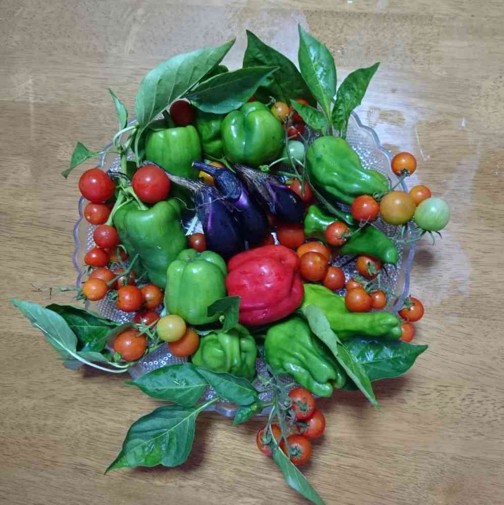小ぶりのミニトマト、ナス、ピーマンでしたので 遊んでみました🎵