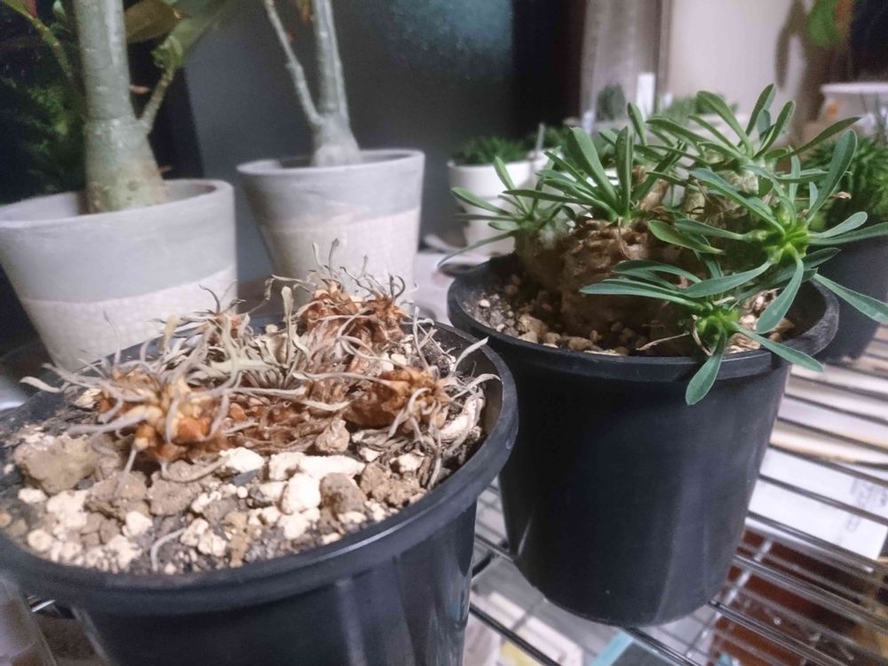 どうやらユーフォルピアの蛾眉山は落葉するらしい・・・しかし、どうしてもう一方は落葉しない!?同じような環境で栽培しているのに・・・