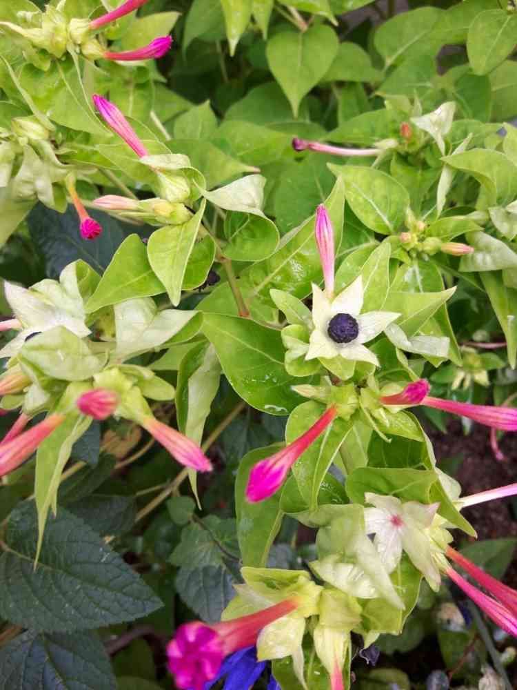 オシロイバナ、小ちゃい頃は花には興味なく、種を集めて石ころで叩いて割って、中の白い粉を集めて、手などに塗って白くなるのをオシロイだと、喜んで遊んでましたょ〜🤗