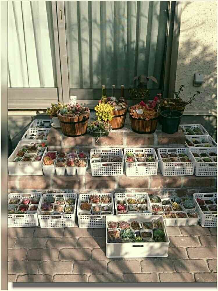 たくさんの多肉ちゃんが整然と並んで日向ぼっこさせてもらって気持ち良さそうにしていますね😄
