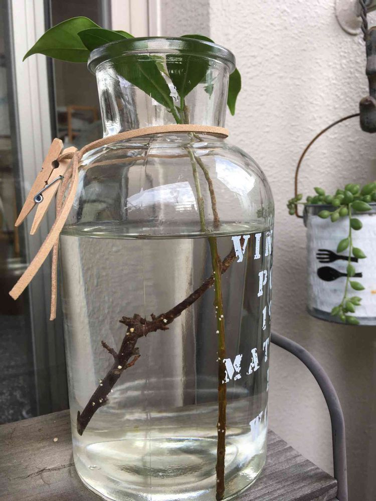 時期的に土に挿しても根が出るのが厳しいかと思い2日目早々に水耕栽培に二本とも切り替える💦