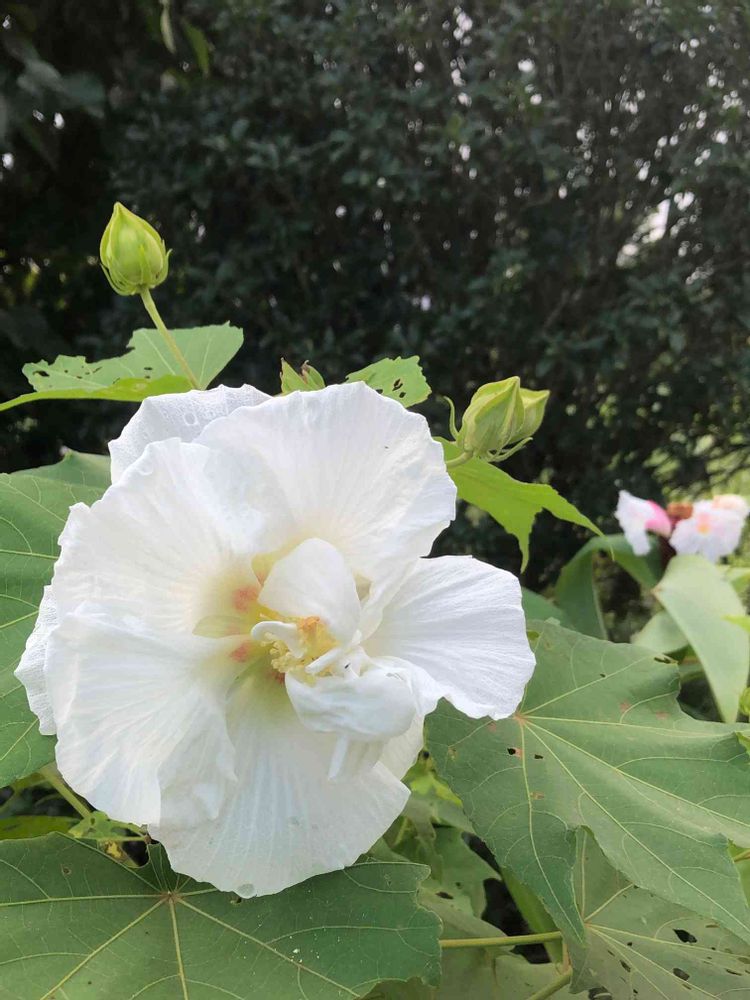 今朝は酔芙蓉が、純白の花を二輪咲かせてくれました🌟🌟✨