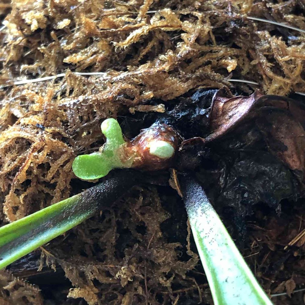 板付け時に小さな貯水葉らしきものを折ってしまったチビリドレイですが、そこからいびつな葉っぱが伸びてきました。おまけに胞子葉らしきものも頭を出しました。