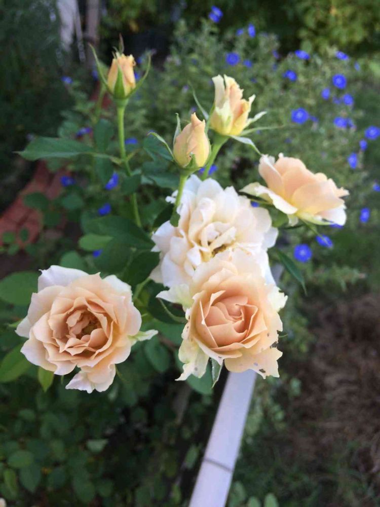 アメリカンブルーの下の方で、咲いていた薔薇がグーンと伸びて念願のコラボ出来ました(*^ω^*)