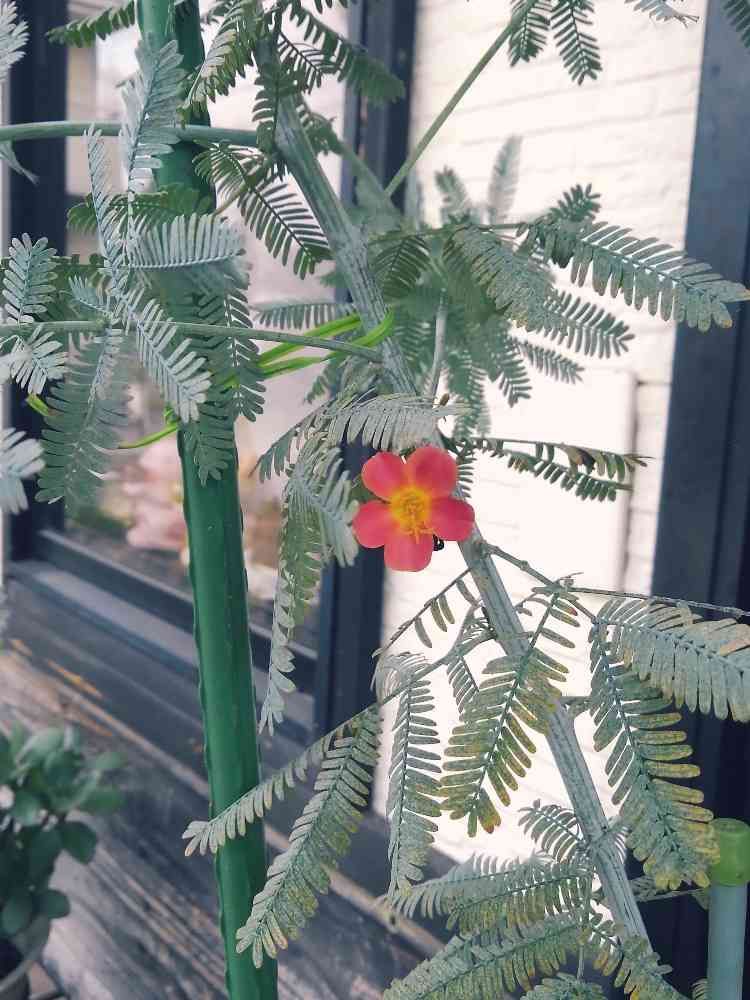 この間の台風か夕べの雷雨の時に、ポーチュラカが飛んできてミモザささったみたい(*´艸`)