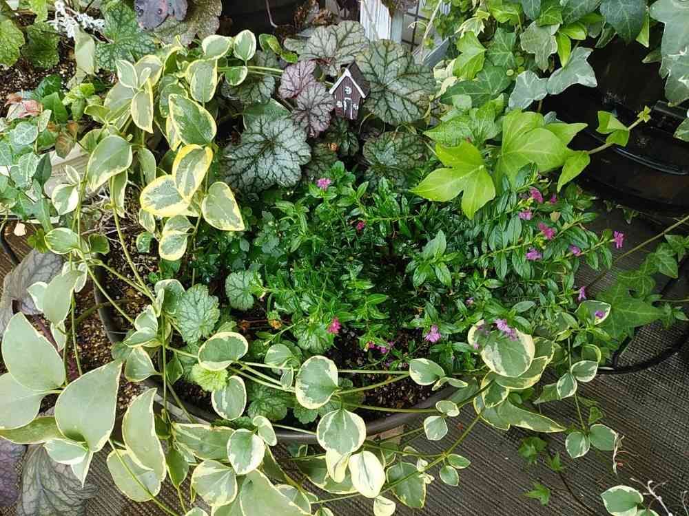 →10月終わりに葉ボタンのブラックルシアン入れて作った寄せ植えでした。全然雰囲気変わってる😅😲🌿