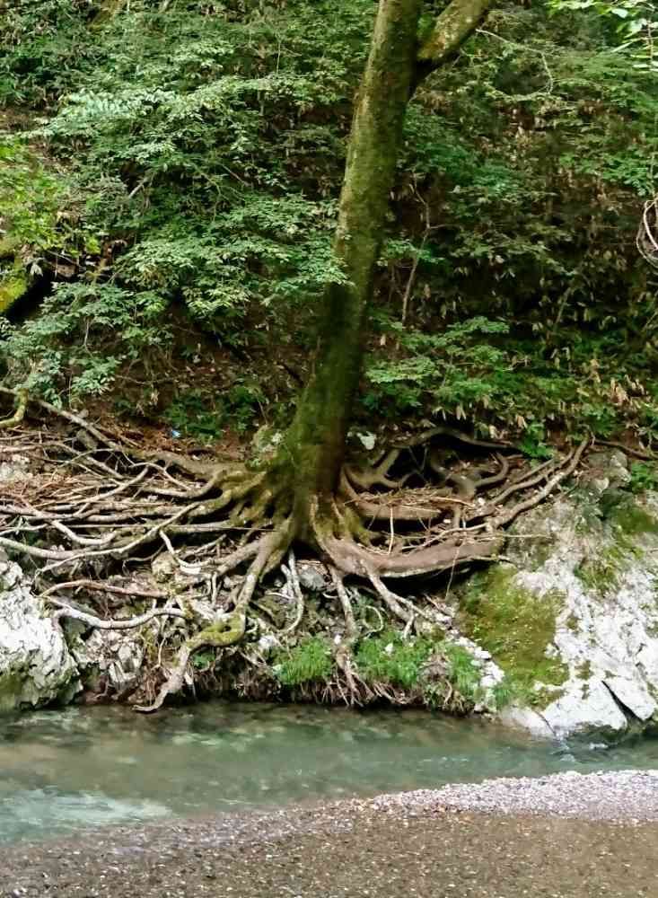 川の土が掘れてしまって、根っこがあらわになってます。徐々にこうなってしまったんでしょうね😭。