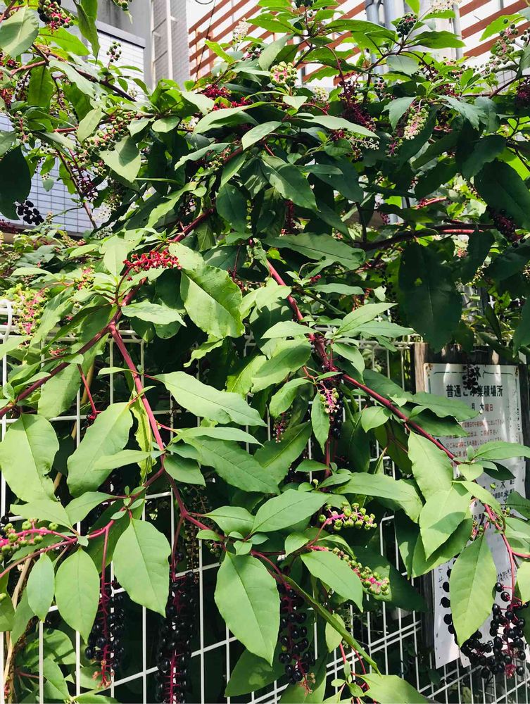 巨大なヨウシュヤマゴボウに出会いました。全容はこのpicに写せない!大体このpicの2〜3倍はありそう😃