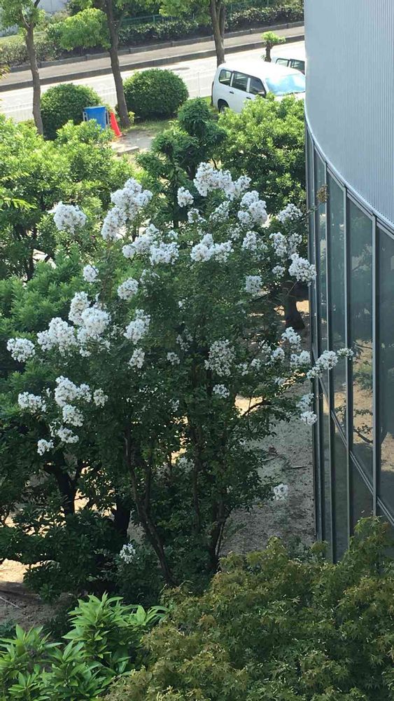 昨日、会社の3階から渡り廊下越しに撮った白いサルスベリさん、なんだか涼しげで、、。