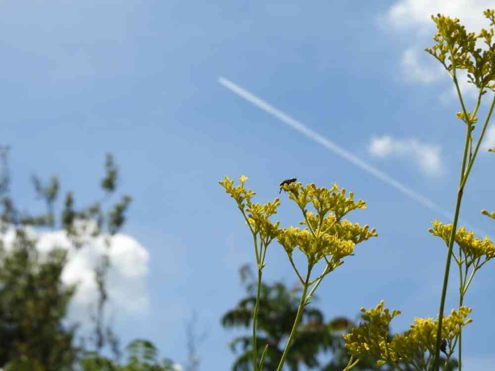 女郎花と飛行機雲 飛行機雲が消えなければ☂️になるそうな
