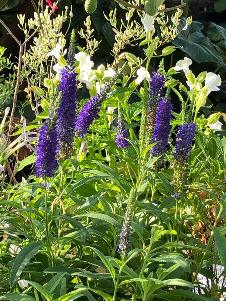 奥には零れ種から咲いてくれた白の【トレニア】さん♡♡この子はまだまだ夏を感じてたくさんお花を咲かせています♬︎