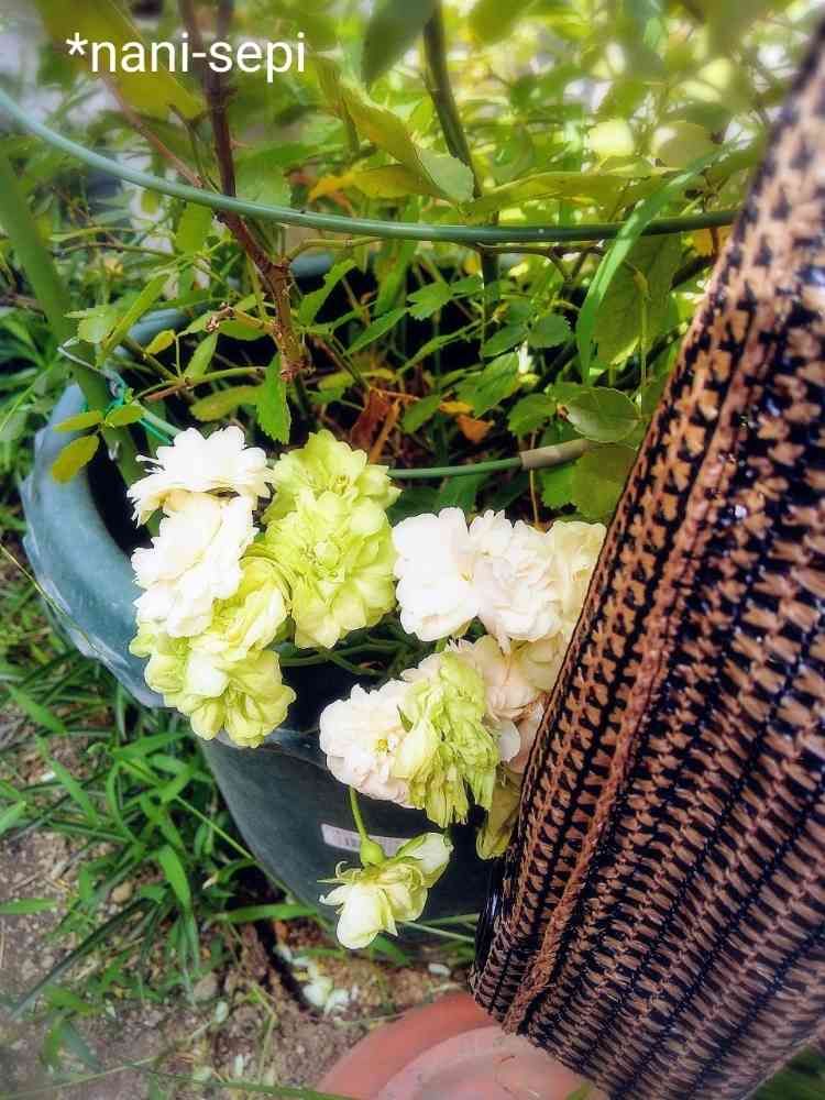グリーンアイスの、ミニ薔薇、グリーンからバニラアイス🍦色に。シェードに、隠れてました。