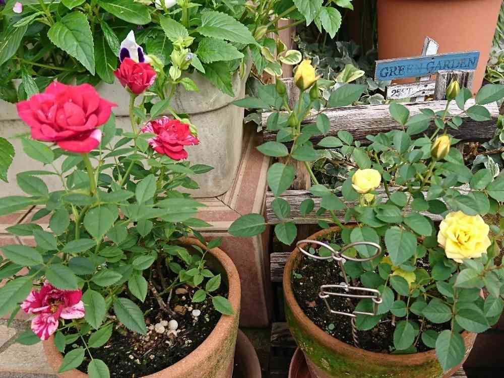 ミニバラは咲いては切りつめられ、黒星病とも闘いながら次々咲いてくれています