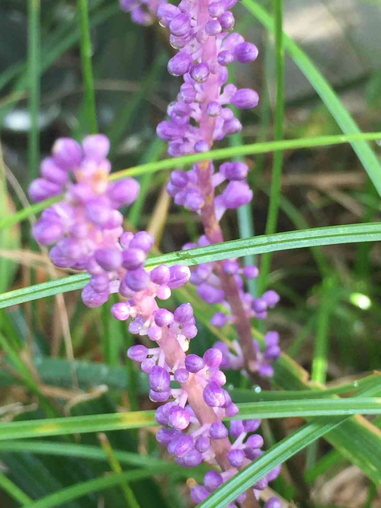 台風15号で落ちた蜂の巣の側に 群生しているヤブラン