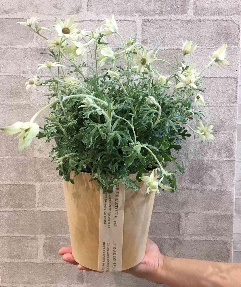 フローリストの間でも人気のフランネルフラワー。お花の手触りが優しくふわふわ♪色味も優しいホワイトグリーンなので癒されますよ。少し大きめの4号鉢が入荷致しました。素敵な器と共にお部屋のインテリアとしていかがでしょうか?