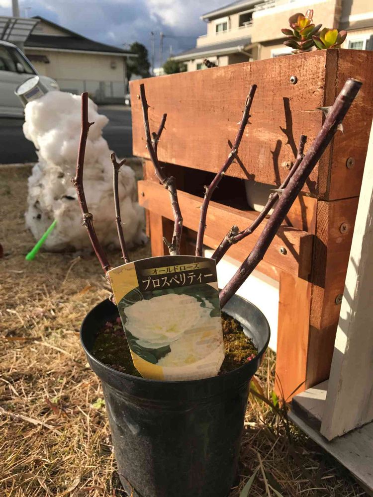 5月には30センチぐらい伸びて花が咲きますが、それと同時に根元から新しいつるが出てきて、こちらがメインのつるバラに成長するそうです。10月にもう一度咲き、1月は葉を全てとりプロスペリティーに冬が来た事を教えてあげる