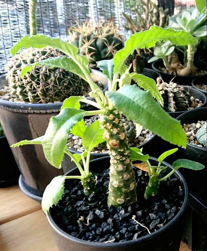 なんか葉っぱが波打っててギザギザなのを昔はドルステニア クリスパって区分していたみたいなんですが、最近ではどっちもドルステニア フォエチダって呼ぶみたいですよ。
