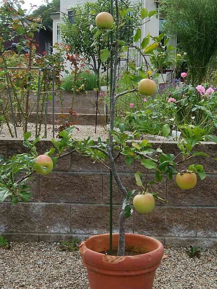 通販の苗を植え付けて3年目。リンゴ🍏5個で~す😋