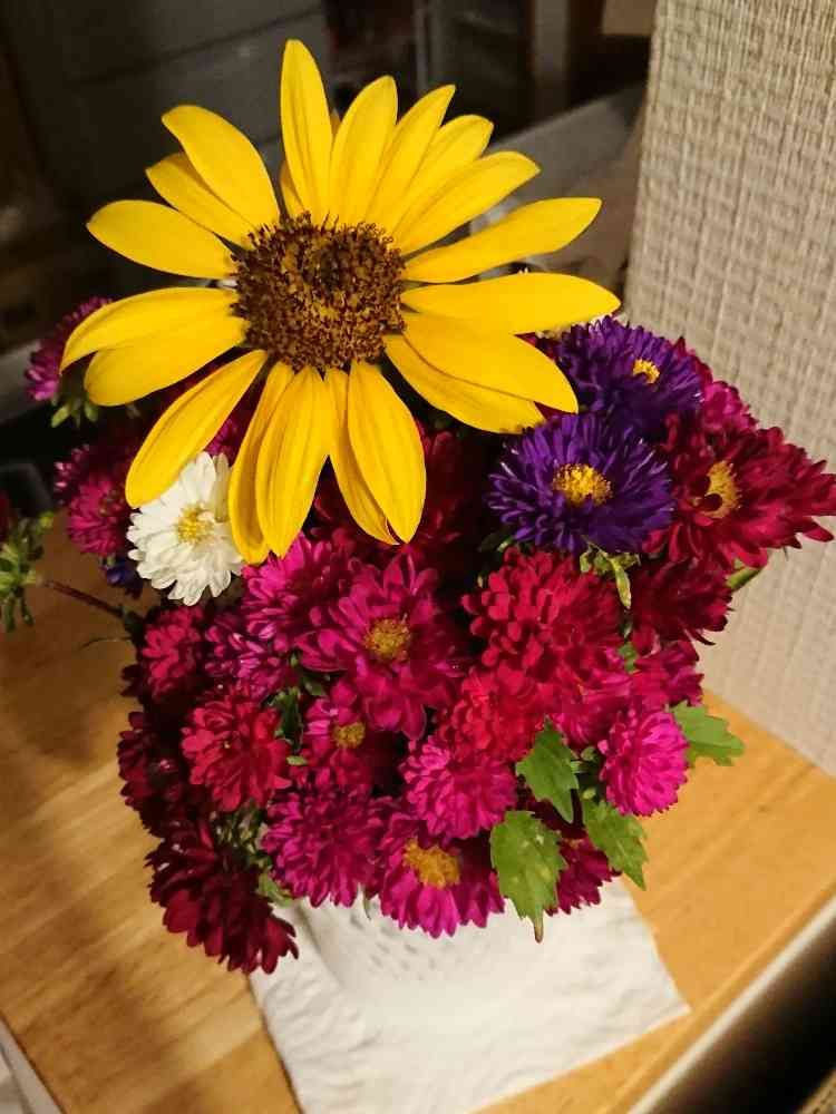 アスターももう終わりに近づき 頭の花は落とし 茎の下の方に後から咲いたかわいー小さな🌼🌿を集めて💐🌿
