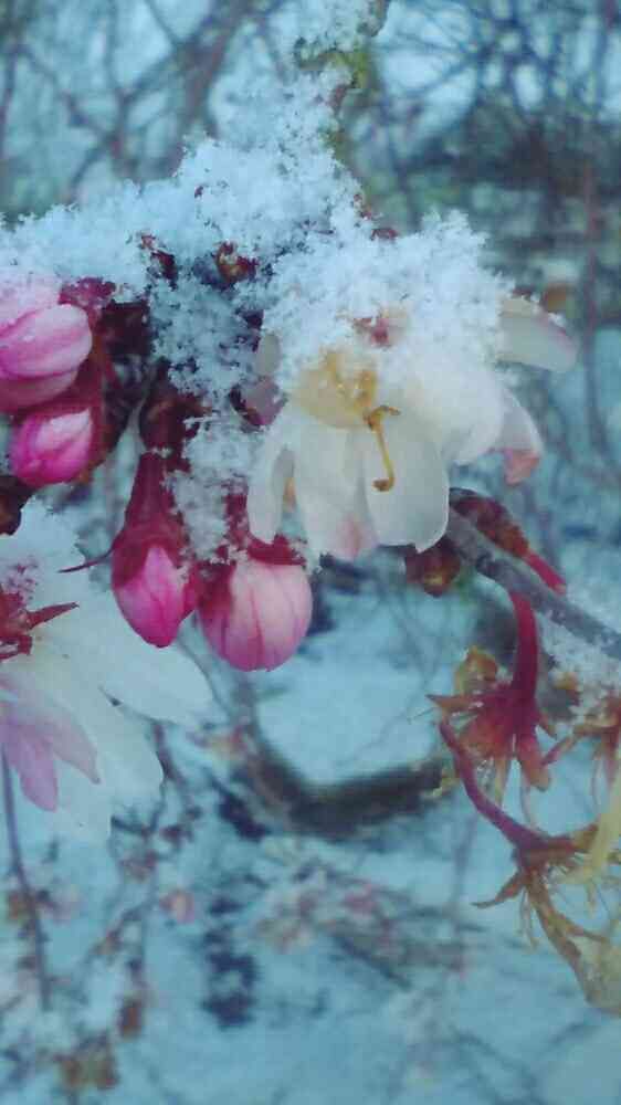 真冬でもちらほら咲いてる時にちょうど少しだけ雪が❄