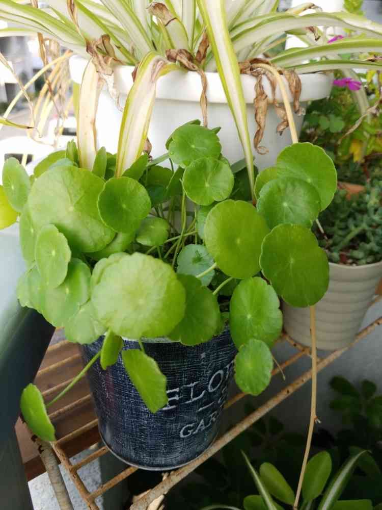 後ろのオリヅルラン?この子も根っこ切ったら復活する?昨年にお迎えしたオリヅルランが激貧💦
