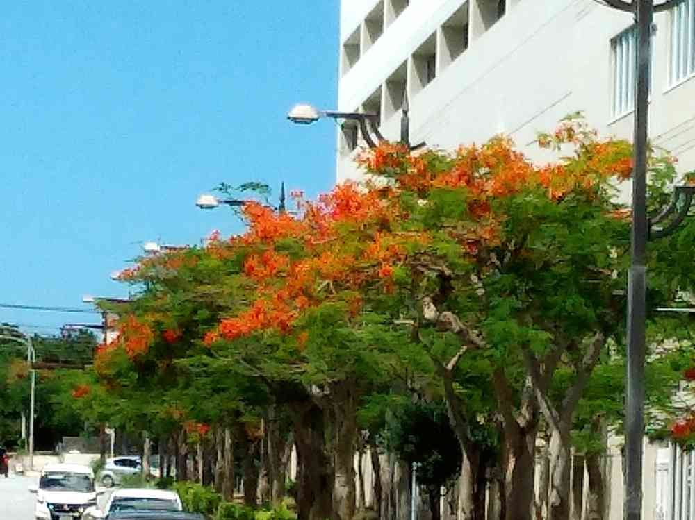 昨日まで会社の同僚がそちらに行ってて、ホウオウボク見たかと尋ねたんだけど、見つけられなかったみたいです😊