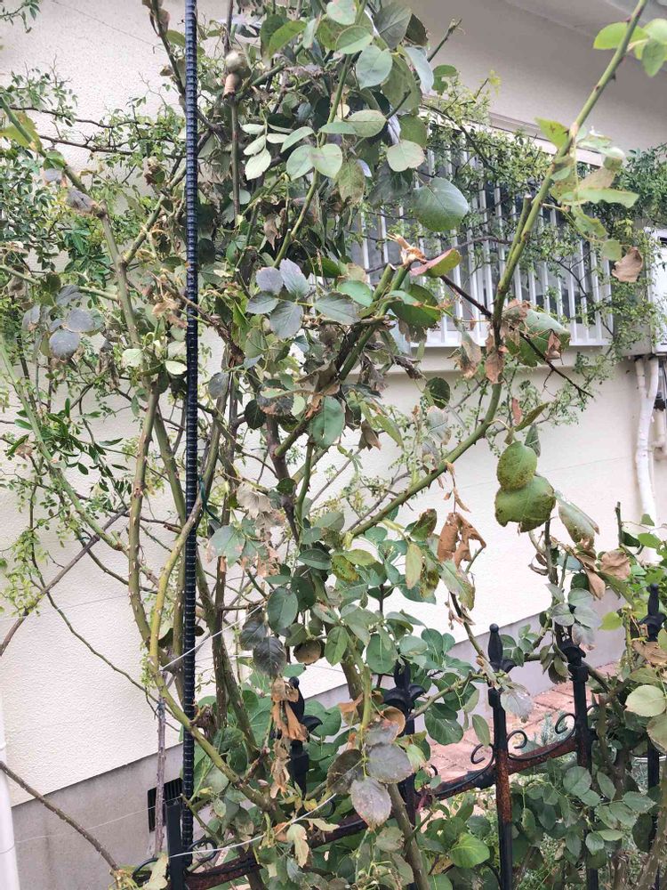 バラの葉は全て茶色で、全て取りました。