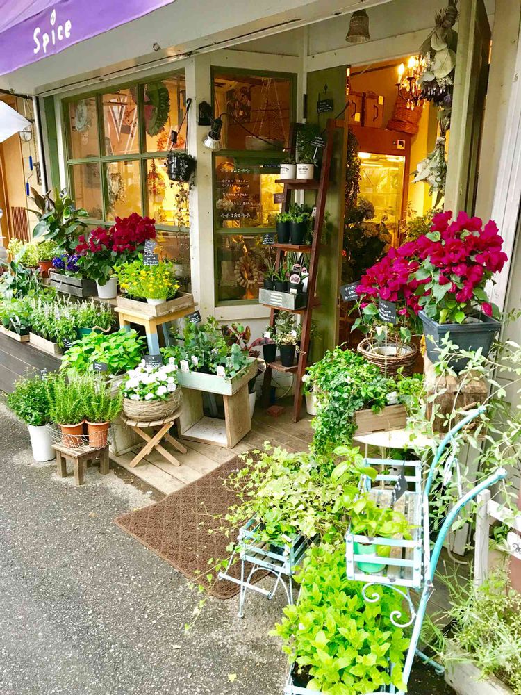 キュートな店構えの店頭には各シーズンのオススメGREEN☘がいっぱい🌷🌸🌺🌻✨