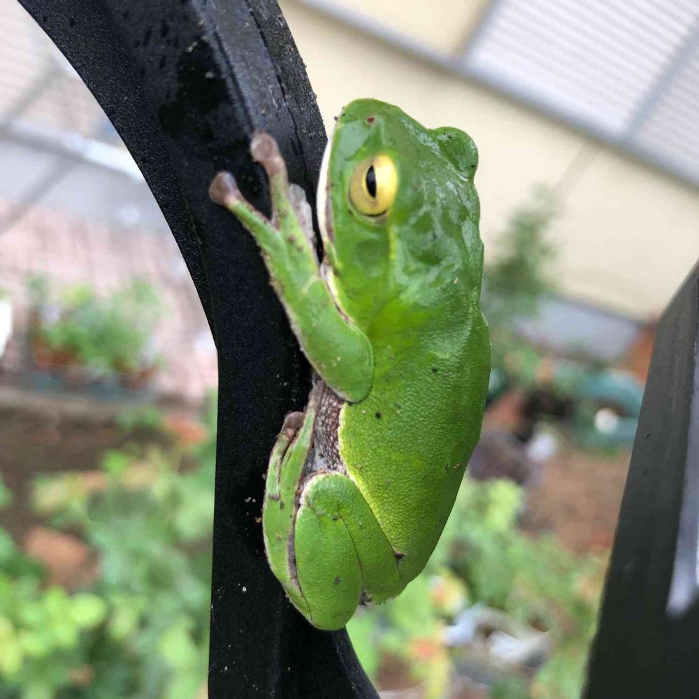 朝、お庭の見回りをしていたところ、大きなアマガエルが‼️