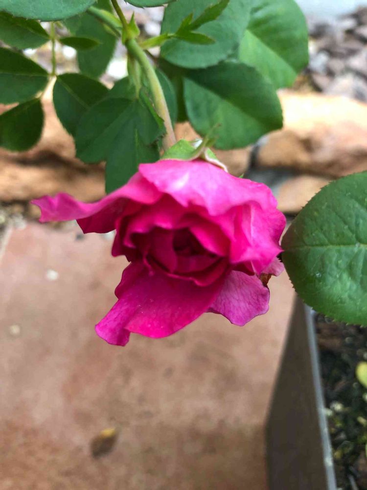 昨年からずっと挿し木したウィリアムモリスだと思っていたバラですが、蕾が付き、ほころび始めたところ、どう見ても色が違う⁈