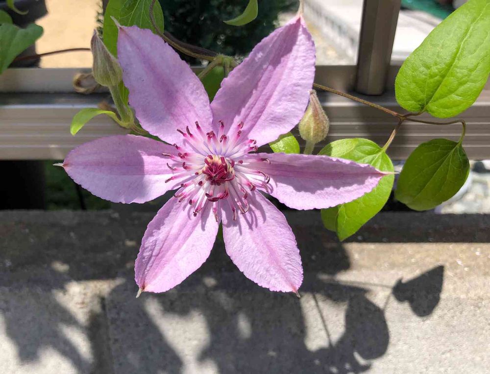 クレマチスが秋を感じて動き出して、今回は良い形で気持ち良さげにパカっと咲いた♪