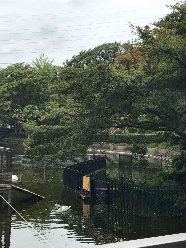白鳥のいる公園の、池側のモミジは紅葉を始めたようです🍁
