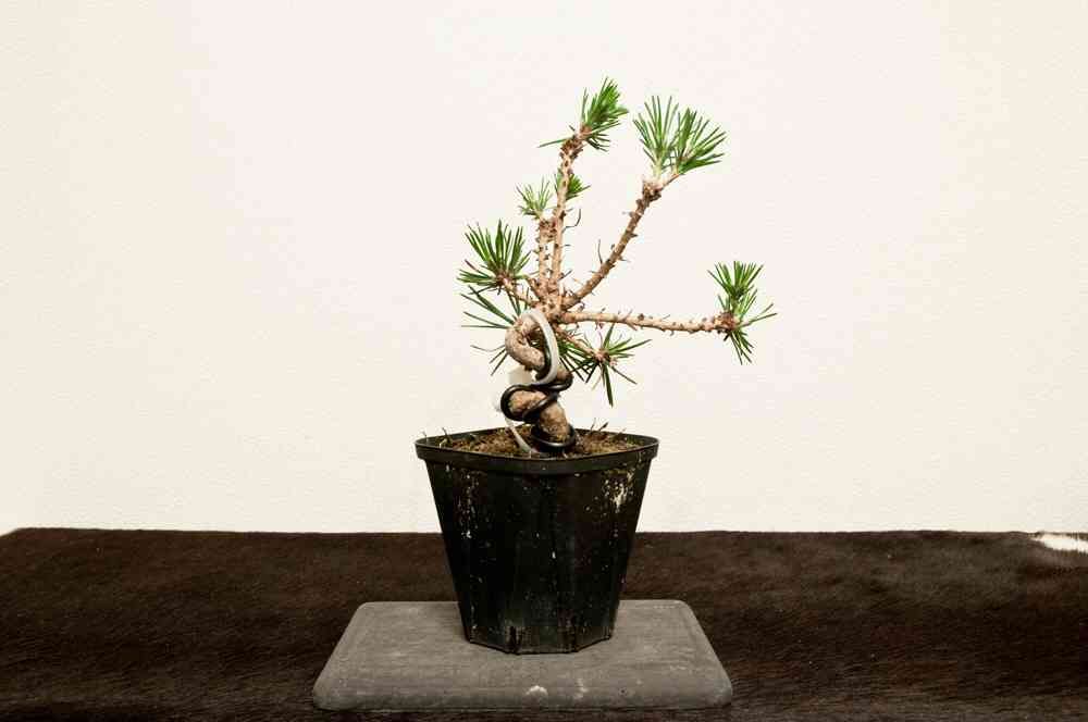 よくある、下の方にゆるい曲が1曲だけある安い幼木を買ってきて、思っ切り曲げてみました。