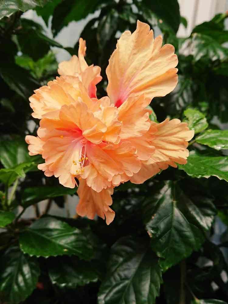 バルコニー/ベランダ,ハイビスカス オレンジフラミンゴ,ハイビスカス咲きましたの投稿画像