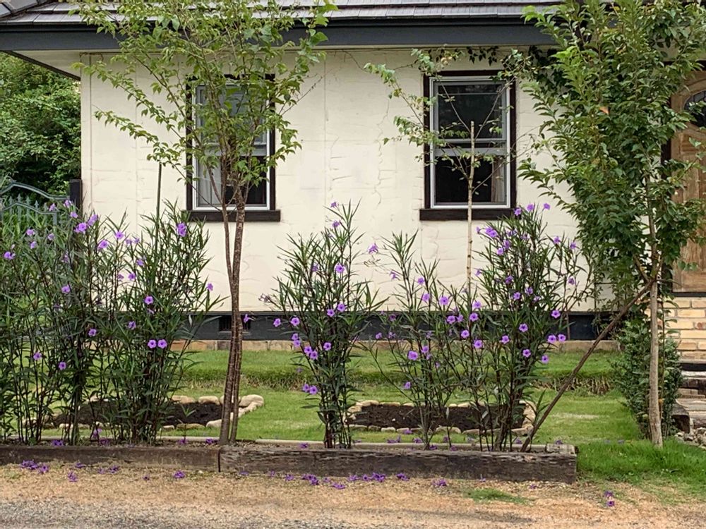 この家の壁にマッチした紫色の花がとても素敵でした💕