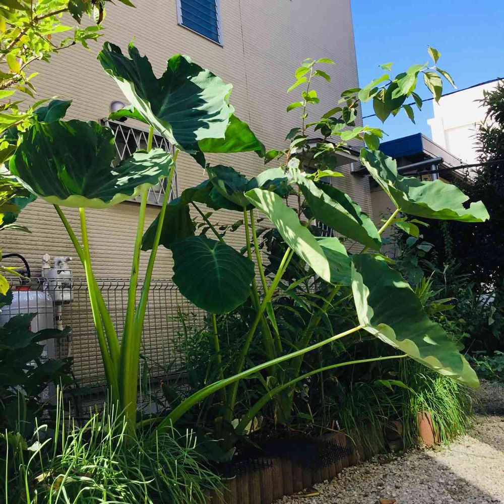 家庭菜園,里芋の葉っぱ,秋晴れの投稿画像
