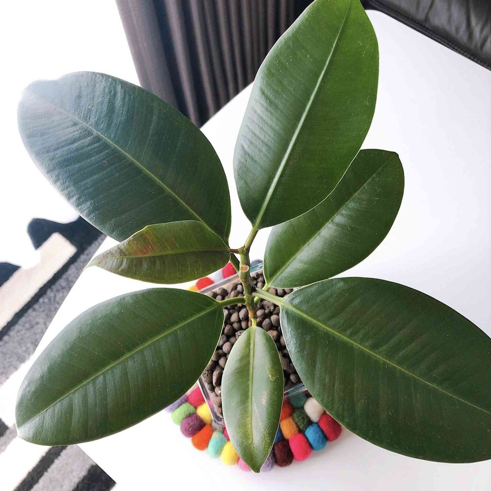 ゴムの木のシックな葉の色と、敷いているマットのカラフルな組み合わせがとてもおしゃれですね(*^^*)
