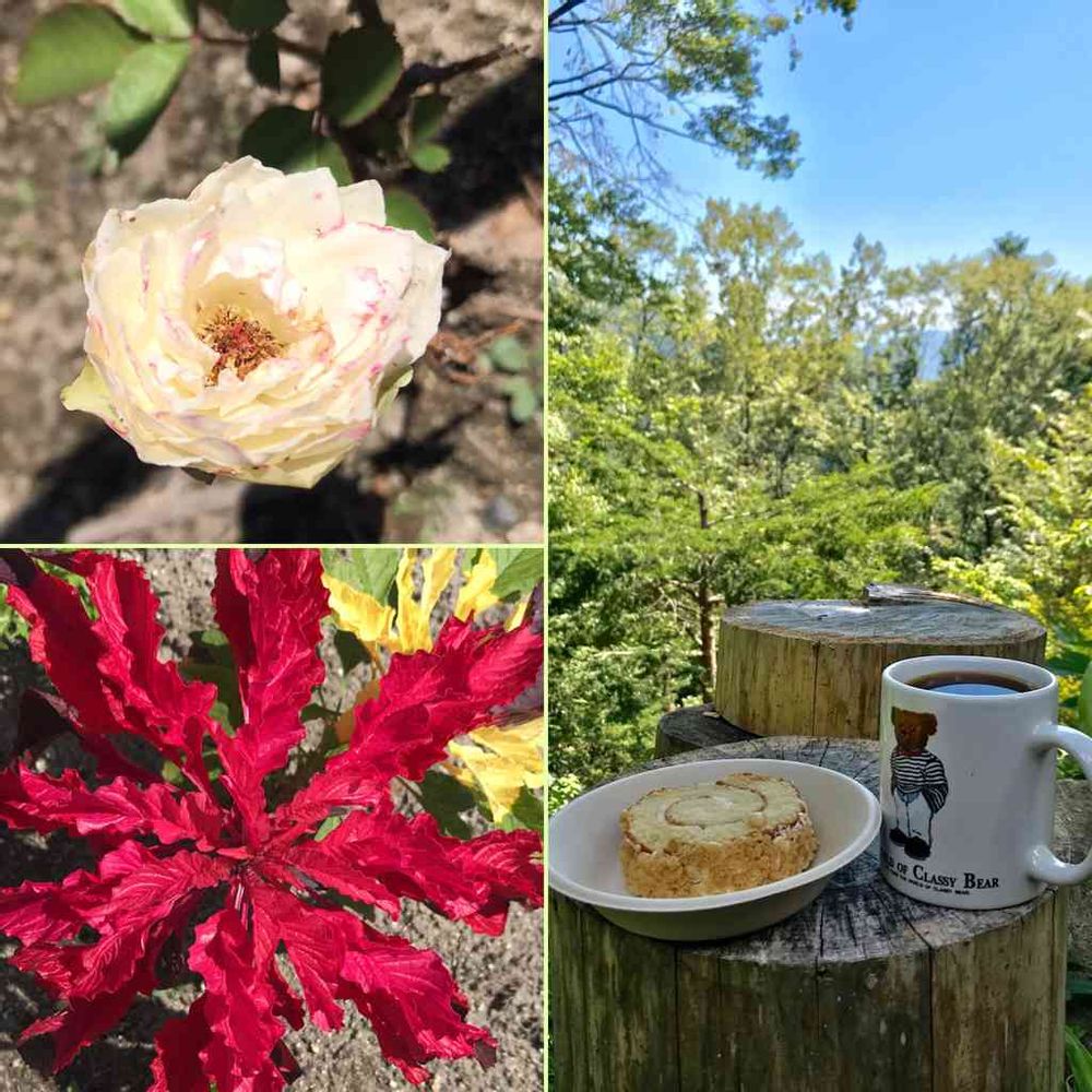 午前中ミョウガ採りで疲れたので、コーヒータイムです。
