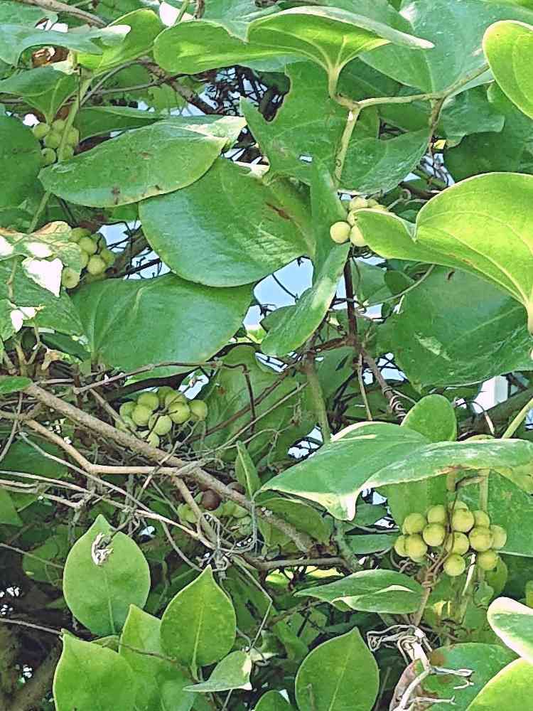 サンキライ、青い実をつけているのを確認。赤くなるのを楽しみに待とう。