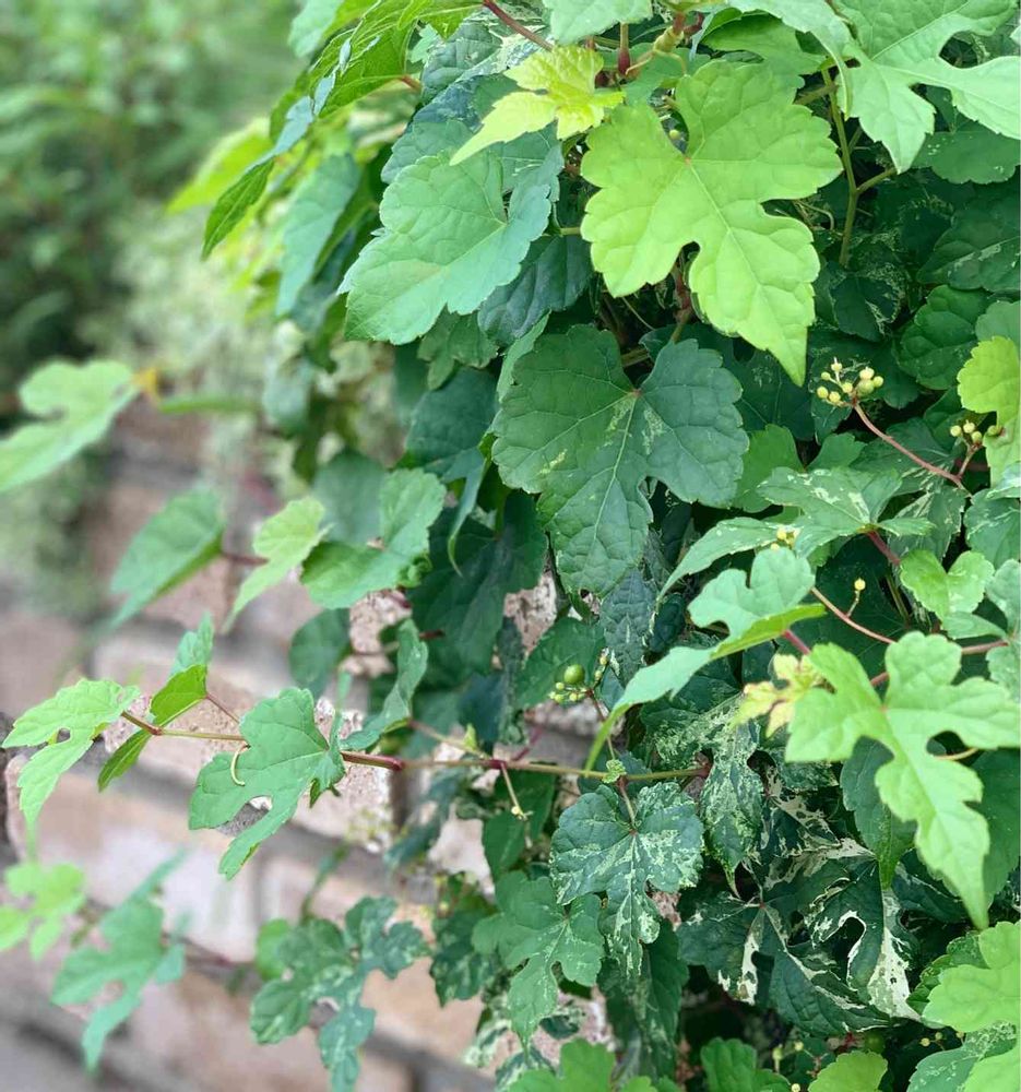 そのご近所さんは家が高い擁壁の上にあるんだけど。その擁壁にバラを誘引してあって、擁壁の足元はぐるっとレイズドベッド?だっけ?高さのあるデッカい植栽スペースになってて。そこに色々植えてるなかにノブドウもあって。レイズドベッドから垂らしてあったり。立てかけたアンティークフェンスに絡めてあったり、とっても素敵なお庭なんだ💓