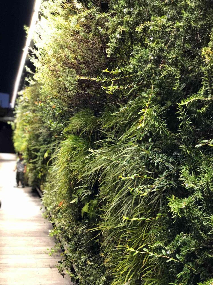 壁一面に生の植物。