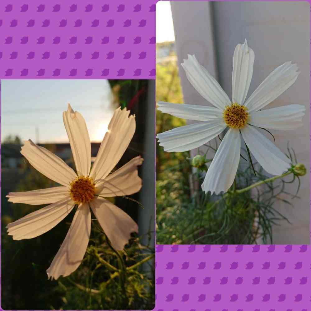 白いコスモスが朝を迎えてました✨