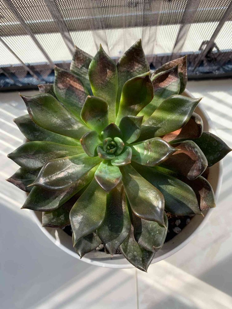 うちのプレリンゼさんも外に出したとたん葉が変になって慌てて部屋に戻しました…。育て方は基本外。と書いてあるのに上手くいきません…。陽射しが強すぎるのでしょうね。私も涼しくなったら出してみようと思っています😊初心者過ぎて水のあげる感じも分かりません…😂