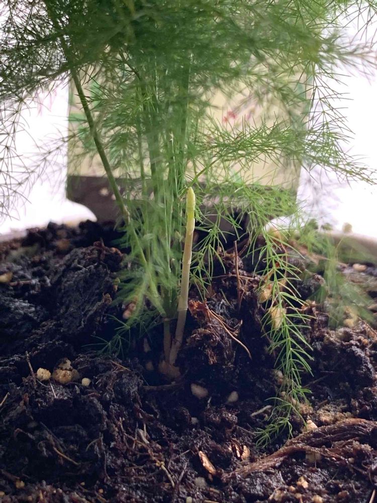 初めての投稿です。ずっと欲しかったアスパラガスプルモーサスナナス。近くのスーパーで安売りになっていたのを植えかえて数日。新芽が出てきたー!ほんとにアスパラガスみたい。このまま元気に育てられるといいなぁ( ´o`)